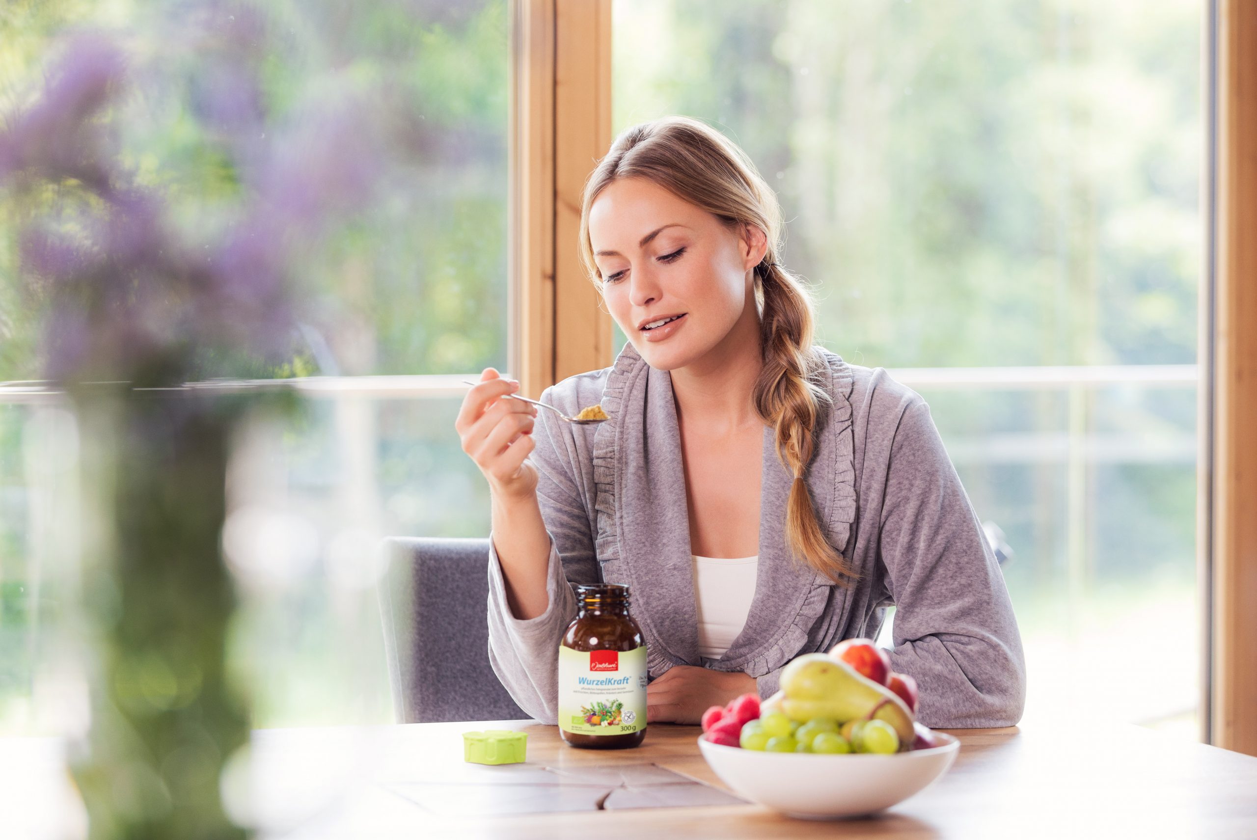 - mit 1 – 2 Teelöffeln WurzelKraft pro Tag beginnen